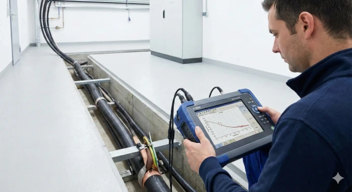Het onzichtbare deel van uw installatie is vaak het meest kwetsbaar. Met kabeldiagnose (bijv. middels Tan-Delta of PD-metingen) bepalen wij de actuele conditie en resterende levensduur van uw (grond)kabels zonder graafwerkzaamheden. Dit stelt u in staat om preventief onderhoud uit te voeren en vervangingen in te plannen voordat er kostbare storingen of graafschade optreden. Essentieel voor organisaties met een eigen middenspanningsnet of uitgebreide terreininfrastructuur.